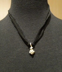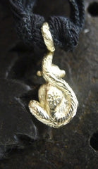 Catherine Michiels 14K Yellow Gold Love Monkey Pendant/Necklace with diamond eyes. Meet Marcelitto, le petit monkey de l'amour, little brother of Marcel, the big Love Monkey. Marcelitto sits in the lotus position and holds a heart looking up to you with love.
