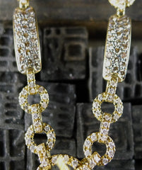 Elegant link chain necklace of 18K yellow gold with chocolate and white diamonds by fine jewelry designer Robert Wander. Chain can be worn separately or paired with any number of enhancers including the ones featured on this page (enhancers sold separately). Lower portion of chain has a diamond circlet where the enhancer bale clips on. Again, it looks terrific on its own inside the open collar of a blouse.