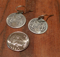 These are great everyday earrings, very lightweight. These earrings have 14kt Gold fill ear wires and are finished with a Sterling re-cast of a small dime size Spanish Conquistador coin.