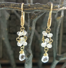 Talisman Unlimited Moonstone Drop Earrings in 14K Yellow Gold. Perfect neutrals to take on the go. Light enough to wear for hours without discomfort. Talisman Unlimited designs echo ancient times, but they play well today. Hand hammering and careful attention to detail exemplify expert craftsmanship.